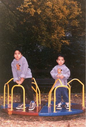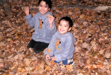 Here are some pictures from last fall. The pictures were taken at Happy Hollow Park in West Lafayette. We love to go there because we can play in the two playgrounds located there. In the fall it's very nice because of the leaves covering the ground.